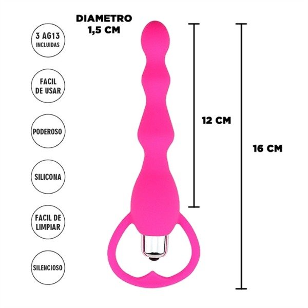 Tipo: Anal con Vibro.Medida: 15 cm x 3 Ø.Pilas: 3 baterías LR44 (no incluidas).WaterProof / Resistente al agua.Phthalate Free / Libre de Ftalato.Industria Argentina.